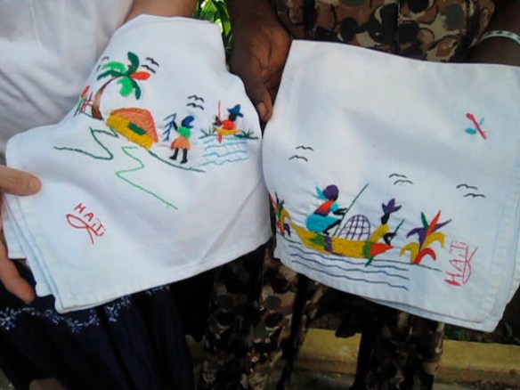 Jacqueline Fénélus stands in front of the Hotel Christophe every day attempting to sell these beautiful napkins. Her daily income is dependent on the traffic flow of tourists coming and going from the hotel. Most days, she just tries to sell enough each day to help care for her two children and her aged mother. Some days are good. Some days she takes nothing home.